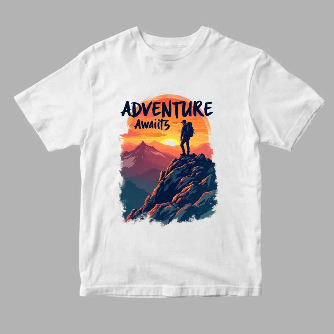 Step into the wild with the LIGERONE Adventure Awaits Mountain Explorer T-Shirt. This design captures the moment of triumph when a traveler reaches the mountain summit and watches the sun set across endless peaks.